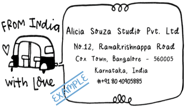 Leave us your address in the notes section while checking out, or you can email us the details hello@aliciasouza.com